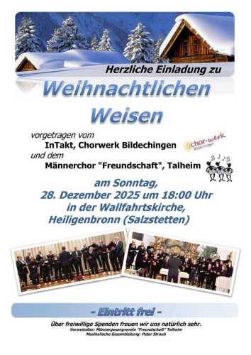 Du liebst Musik? Du hörst uns gerne zu? Dann werde Mitglied im Männergesangverein Freundschaft Talheim e.V. 1928!